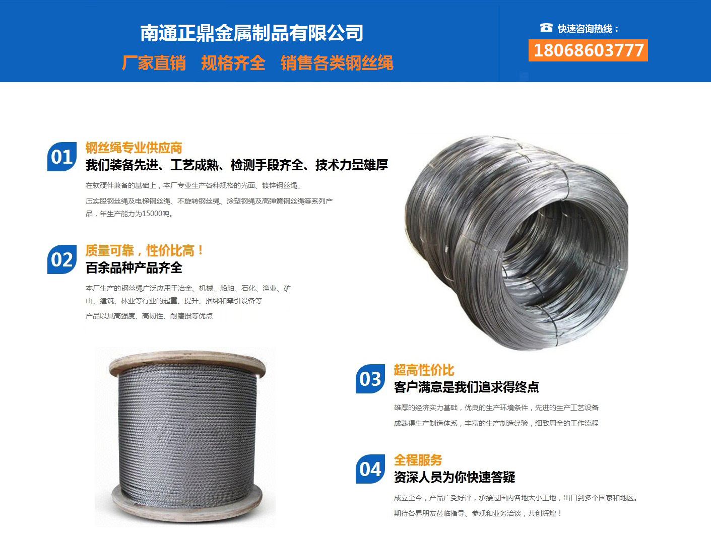 歡迎訪問南通正鼎金屬制品有限公司企業官網,廠家直銷,規格齊全,銷售各種規格鋼絲繩,以誠信為本!